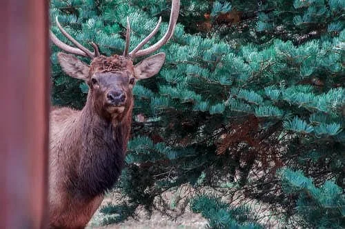 I was walking out to the car by the garage at the place I stayed at in Estes Park CO and a male elk peeked his head around the corner and I did the same. We stared at each other, and for those few moments, I felt in awe.